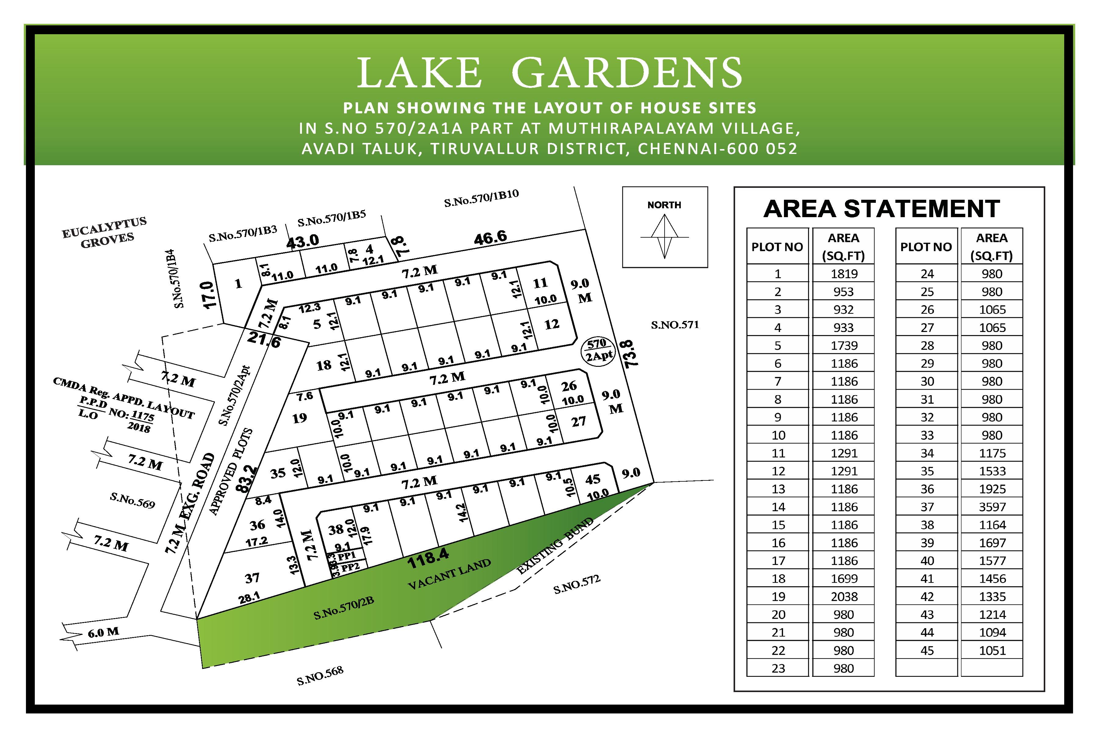 Total Area of 2.29 Acres CMDA Approved Layout , with 45 Premium Plots , Plots Size Starting from 932sq.ft to 3597 sq.ft . North ,South and East Facing PlotsÂ